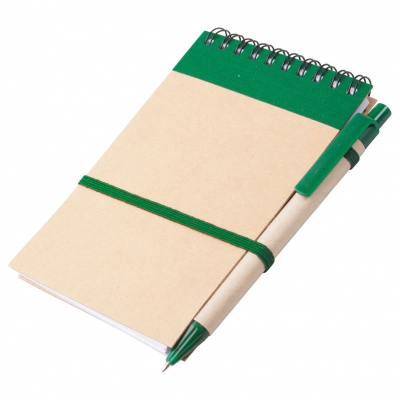 Еко бележник с химикалка Зелен