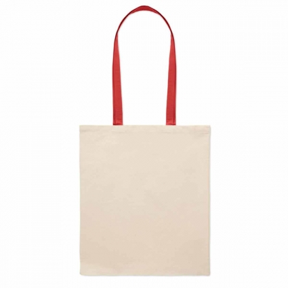 Чанта за пазаруване с дълги цветни дръжки, изработена от памук.